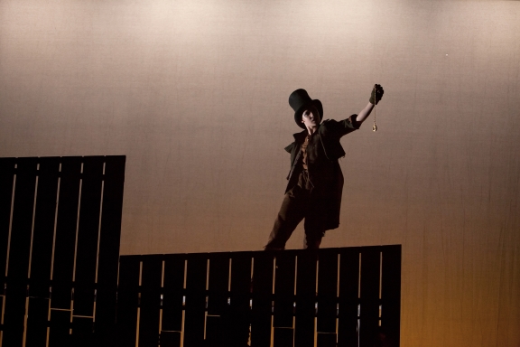 Once we get past the totally unnecessary spoken recap (think ‘Seen previously’ on mini-series), Act II takes us through Fagin’s downfall, and specifically Oliver’s part in it. As Oliver, Jemima Brown is initially vulnerable. It’s not a huge leap to Mark Lester in the film. But that’s not the real Oliver, points out Dodger, who observes that, “Only Sykes saw Oliver for what he was,” going on to note that under the outer innocence is someone all cunning and conniving. It’s just as well Dodger tells us as it’s not desperately clear in the dance.