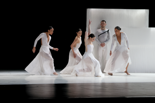 Spanish fashion designer David Delfin picks up Crespo’s colour palette, costuming all the women wear loose-fitting, flowing and rather appealing white dresses except for Carmen, who comes not in the familiar red, but black. The men are also in largely white, with just a black stripe here and there. That Micaela is dressed like the other women, and that Don José and Escamillio are dressed similarly, makes picking them out initially quite difficult.