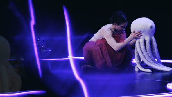 Like many of the works shown, Aidonopoulou and Tegou’s Underwater challenges the boundaries between dance and theatre, combining movement with other visual arts. Watching on neatly edited film, it is sometimes difficult to get a real grasp of how a piece might be live but I found their piece, with its bubbles, balloons representing water droplets and giant stuffed octopus, gently appealing.