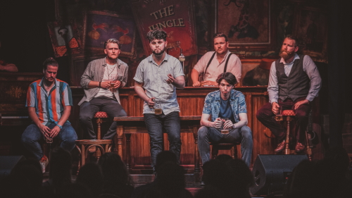 The guys of The Jungle (their pub) have had to drop inviting you up on stage for a pint and a dance, for now, although they get round the first rather neatly by using a long paddle to deliver the beer. After that comes an effortless, easy-going diet of classic rock and wistful ballads, solo and ensemble, and some brilliant a cappella singing. It’s all led by narrator Conor Hanley, who tosses in a heartfelt eulogy on the loss of traditional pubs and the friendship experienced inside. There’s lots of humour but like the whole show, it’s all beautifully judged. They send you home with a high-energy, all-action beer glass-bashing dance.