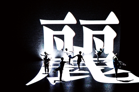 Throughout Formosa, those words also provide a visual landscape as traditional Chinese printed (rather than calligraphy) characters are projected (designs by Chou Tung-yen, 周東彥, and Very Mainstream Studio). The words soon go their own way. Characters sometimes fall like rain, or fade and disappear, or simply drift like a slow-flowing river. Place names and phrases break up, and strokes drift apart. Sometimes they become huge, a single character filling the whole stage, threatening to overpower the dance. At one point they come out of blackness as if stars; a Milky Way of words that glow above. The projects never overwhelm the dance, though.