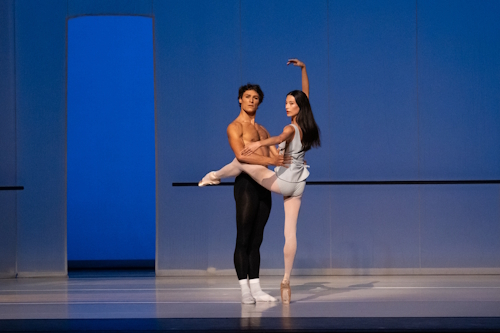 O’Neill, who arrives on pointe, is wonderfully pliant. When she plies at the barre, there’s a sense that she’s doing so in a way to attract his attention. When she developpés her leg, she’s fully aware of her appeal and what she’s doing. When the pair finally connected, there was an intense frission.
