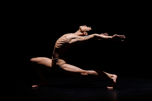 Italian choreographer, Mauro de Candia’s La morte del Cigno (2009) to Camille Saint-Saëns’ Le Cygne 1886, was danced by Rong Chang. Apart from the title, it has nothing to do with Pavlova’s Dying Swan. In nude-coloured shorts and looking completely naked, Chang writhed on the floor in a spotlight. At times, you could count his ribs. Impressive was the way he was fully into himself, although the movement only occasionally resembled the beat of a swan’s wings.