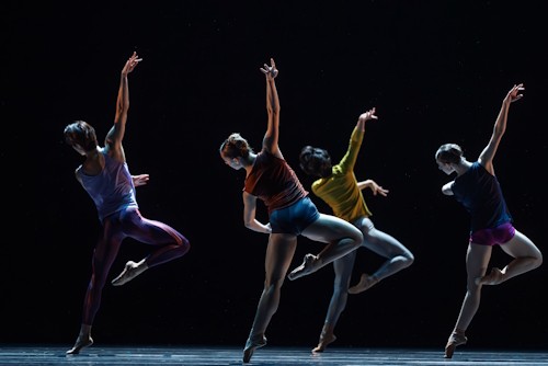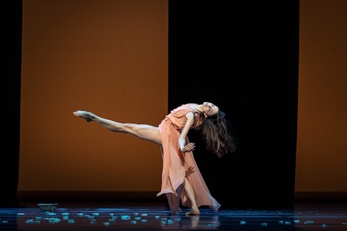 Danielle Beskur, Appoline Hartz and Rose Perrot appeared in Liška’s 3 Isadoras from 2021. Created in collaboration with the late Colleen Scott, Liška’s three short solos are based on choreographic material from Isadora Duncan and Frederick Ashton’s Five Brahms Waltzes in the Manner of Isadora Duncan from 1976. The three women swept over the stage in Duncan’s characteristic movements, running with high knee-up skips and swinging arms. The last solo is the famous one, in which the dancer spreads handfuls of petals on the floor.