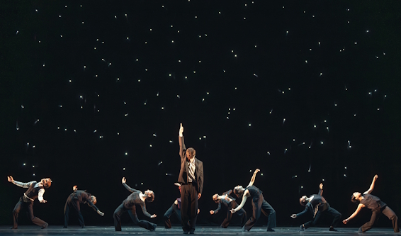 The evening ended with the BJBM performing Marco Goecke’s Devil’s Kitchen, which he created for the company in 2025. To Pink Floyd songs, all sixteen dancers seem to be caught in a world of sex and drugs. There’s a lot of touching the genitals and scratching as if in need of shot. The jerky movements and the constant tension in their bodies, made them look like people hooked-up to an electrical current that was pulsing through them, and which they cannot escape. Neither in the light downstage nor when disappearing into a cloudy mist upstage. When Joe Bratko-Dickson stands alone at the end screaming silently, it felt like watching an elegy to loneliness and indescribable pain.