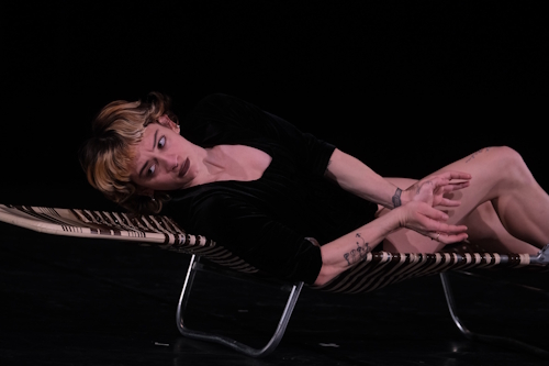 Using an old sun lounger as a prop, Santagado questions efforts to do and perform as she muses on the potential impossibility of stillness and nonexistence. I found it difficult to connect, matters not helped by the text, presumably important, being difficult to hear clearly when she faced away from the audience and when drowned by the music.