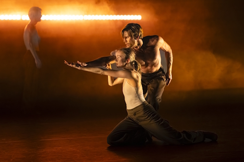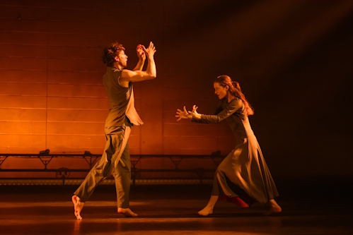 A third group of works succeeds on a smaller scale by being clearer about its own character. Staves by Heather Lehan for Northern Ballet opens the evening with charm, precision and a bright theatrical good humour. In cropped tailcoats, with immaculate hair and smiling faces, Noah Benzie-Drayton and Archie Sherman make musical structure visible through obvious but effective phrasing, so closely tied to the score that melody and rhythm seem to pass directly into the body. There is even something faintly reminiscent of Paul Taylor in its cheerful polish and lightly comic air. Its wit and polish give it buoyancy, and its lightness never feels cheap.