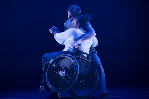 As the pace quickens, the most interesting passages are those in which dancers Gladys Foggea and Maxime Thomas both retain a degree of independence. The dance holds support and autonomy in tension, giving both dancers room to remain distinct. The relationship itself remains open, and that uncertainty keeps the piece alive. By the end, when the wheelchair returns to the stage with a presence of its own, the duet shifts towards something closer to memory, trace and the afterlife of contact.