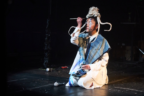 The night unfolds under the weight of language. Loh’s script stretches in many directions at once, moving rapidly across the 4th-century BCE text The Classic of Mountains and Seas (山海經), ancient mythology, British politics, global extremism, climate crisis, personal grief, and fragments of self-narration. Each theme carries weight, each is vivid, yet the transitions lack connective tissue. The text behaves like a collection of fragments placed side by side, rather than ideas generating momentum from one another.