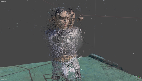 The figures on screen dissolve into particles, drifting closer. I wonder if they will pass through my body, leave a trace of cold behind. A faint warmth lingers in the air, like the breath of someone who has just disappeared.