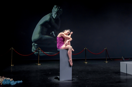 But, bit by bit, they work out a way of understanding each other; to the point where we hear about her abused childhood, told as she sits sculpture-like on a pedestal, and his cruelty to a cat. Suddenly, her confidence and audacity in particualr seems a million miles away.