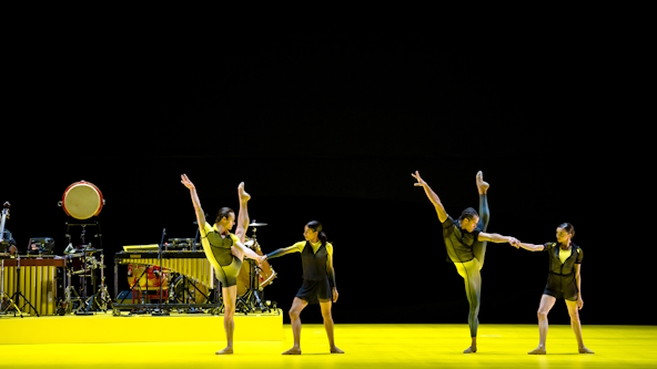 Bushra El-Turk’s score drives hard, and Beibei Wang’s percussion presses insistently for attention, yet the eye keeps returning to the dancers. A few times, though, Wang’s percussion suddenly matches the dancers’ movement texture, and the whole stage comes alive. Those flashes show how thrilling the piece could be, which only makes the longer stretches of disconnection more noticeable. At many points I could barely hear the music as music at all.
