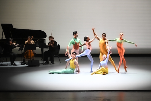 The costumes of leotards and tights, designed by Harriet Jung and Reid Bartelme in a variety of pastel shades, are each an individual shape and design. Despite the shades of difference in every aspect of the work, the emotions and the moves are all about unity and working to a common purpose. It’s ballet enjoyment in a contrasting style.